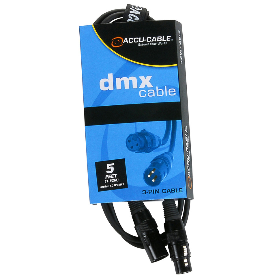 5 foot 3-pin DMX cable to hook up lights to controllers, or to connect dimmer packs together.
