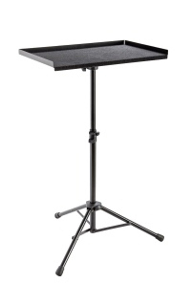 The stable and practical percussion stand provides more than enough space for a variety of accessories. The large robust steel tray is open to one side and is covered with noise dampening felt. For transport, the tray can be removed easily without the use of tools. The robust tripod legs quickly collapse together into a compact and easy to carry package.